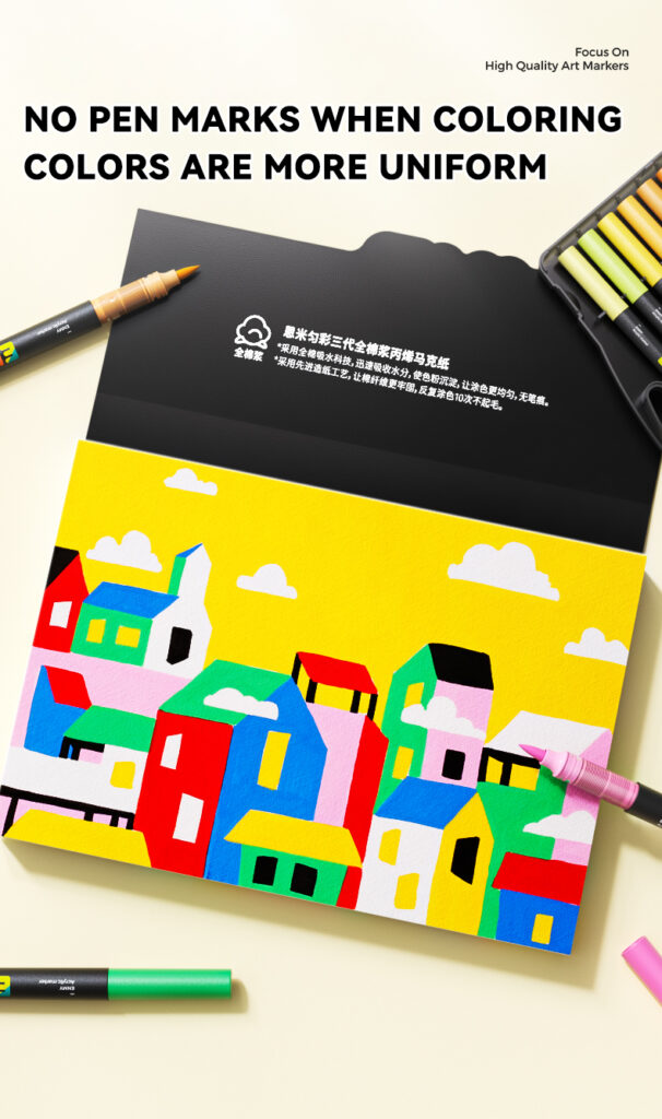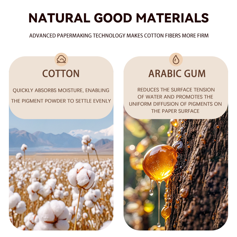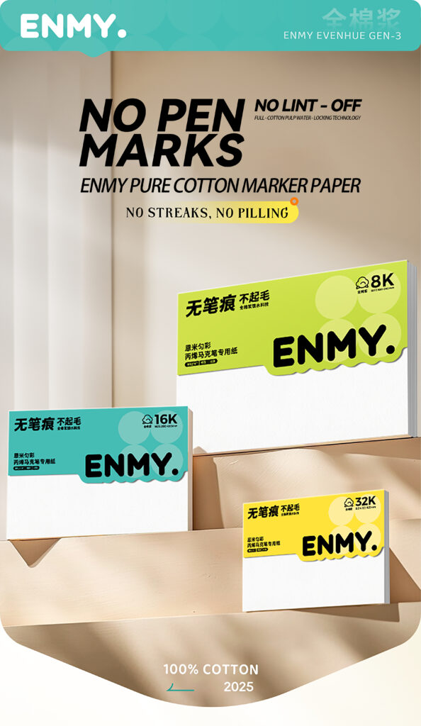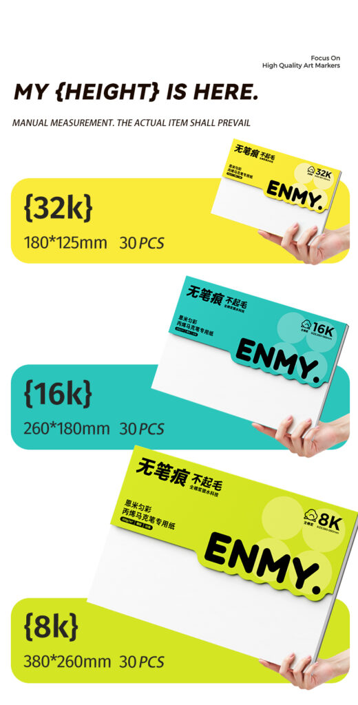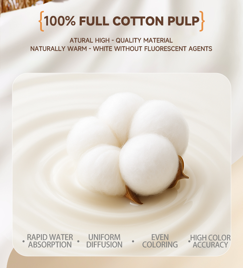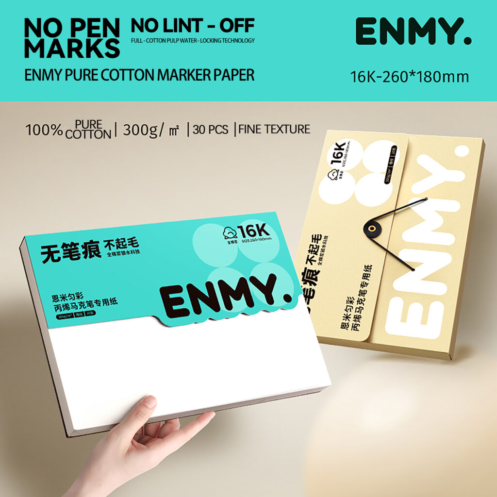 Crafted from 300g pure cotton with a fine texture, our paper features advanced cotton-based absorbent technology and sizing process. It ensures streak-free coloring, resists pilling, and allows colors to blend seamlessly for a professional finish. The single-sided adhesive design enables effortless sheet removal without fraying, while available sizes—8K, 16K, and 32K—cater to various artistic needs. Made from natural materials without fluorescent agents, this eco-friendly paper offers high color fidelity, providing the perfect canvas for acrylic marker masterpieces.