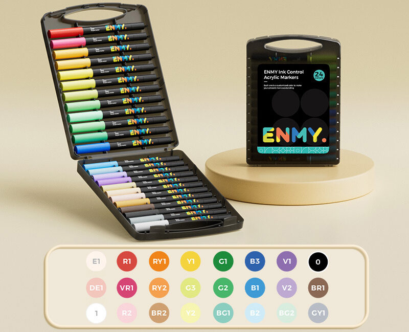 Description Experience the future of acrylic painting with ENMY's innovative Direct Liquid Acrylic Markers. Our unique design ensures a consistent, silky smooth flow of vibrant, water-based ink, making every stroke effortless. The full tube of ink provides long-lasting use, while the professional color combinations offer endless creative possibilities. Perfect for artists of all levels, our markers are ideal for a wide range of surfaces, including canvas, wood, ceramic, and glass.