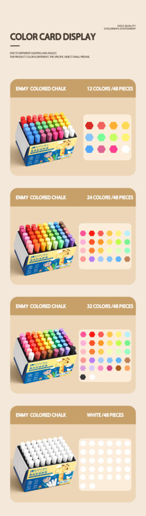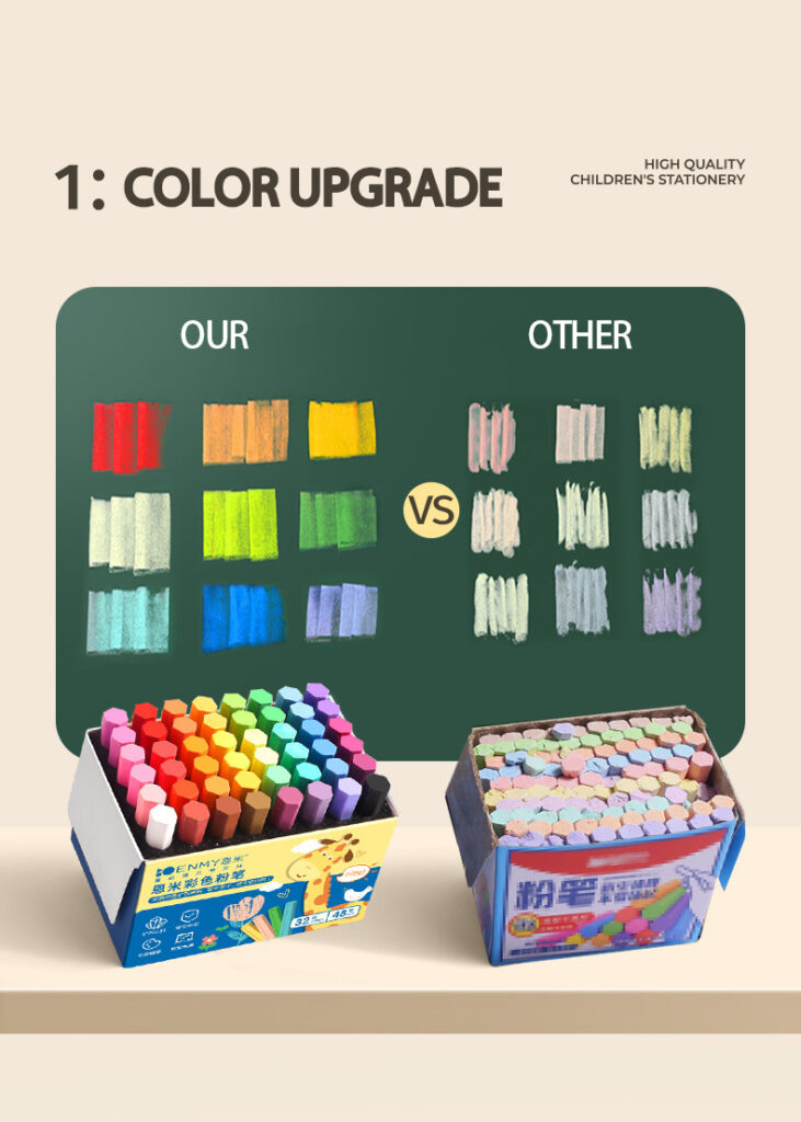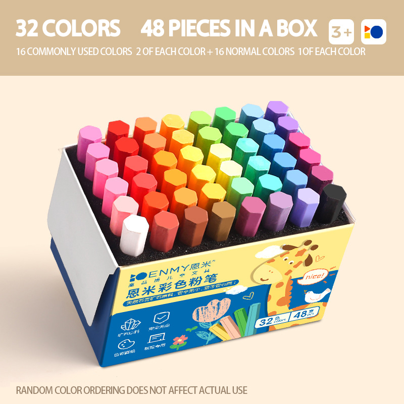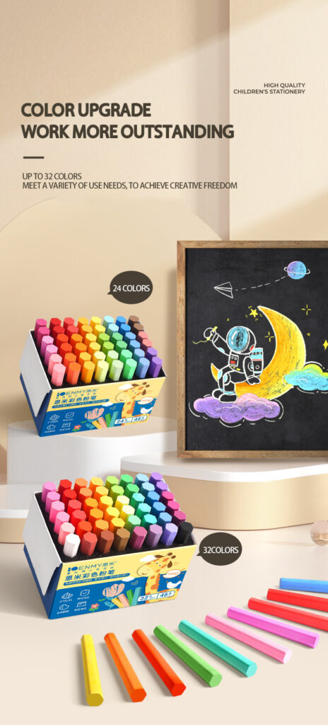 32 vibrant hues with high pigmentation—no fading, just vividness. Made from fine gypsum, it glides smoothly for effortless writing and drawing, no scratching or clumping. Dust-free design keeps spaces clean, while water-soluble formula allows easy erasing and creative blending. Bend-resistant and durable, it’s non-toxic—perfect for classrooms, blackboard art, and kids’ doodles. Let every stroke pop with color!