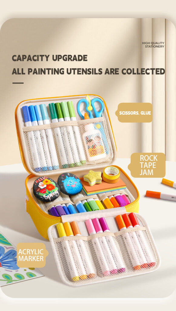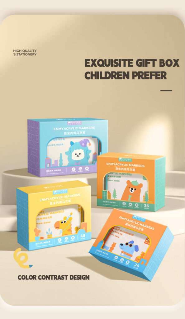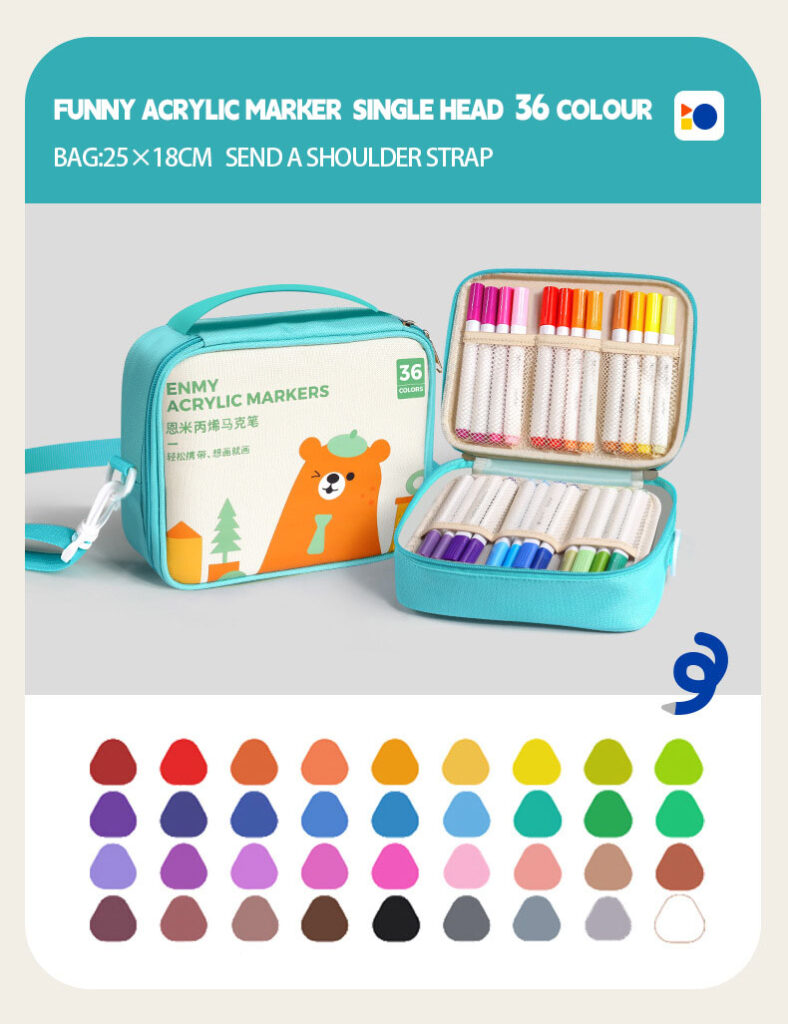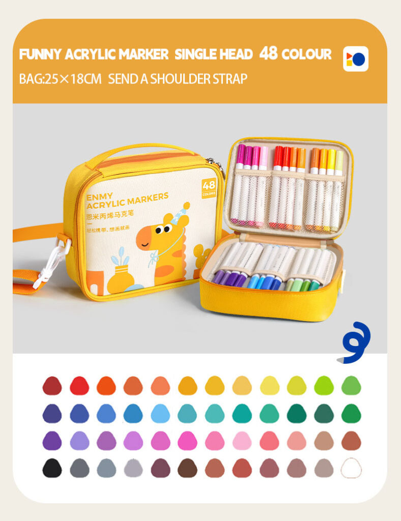 The Little Artist Cheese Pack Acrylic Markers are tailor - made for young creators! With adorable cheese - shaped barrels and fun stamp - style tips, these markers spark kids' enthusiasm for drawing. The food - grade, non - toxic ink is certified safe, giving parents complete peace of mind. The dual - tip design combines broad coloring and fine detailing in one pen, while the acrylic ink offers high coverage, quick - drying, and waterproof performance for versatile crafting on various surfaces. Choose from 12 cheese - themed hues and layer colors to create vibrant, mixed - media art. The divided, portable packaging and included instructional stickers make it easy for kids to explore their artistic side anytime, anywhere!