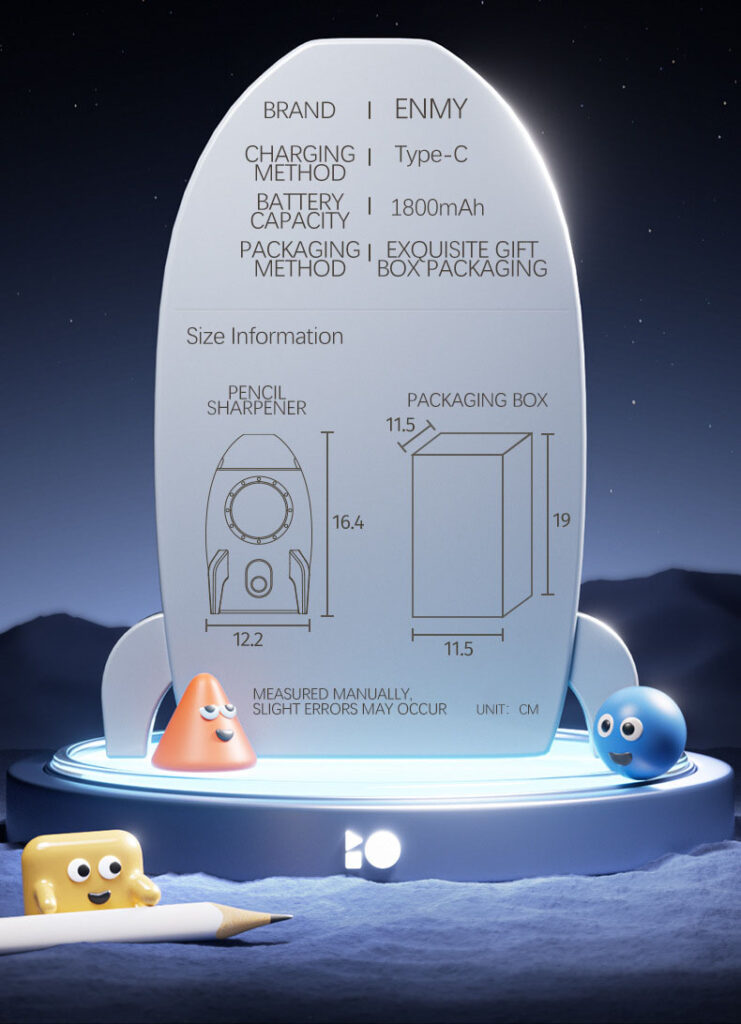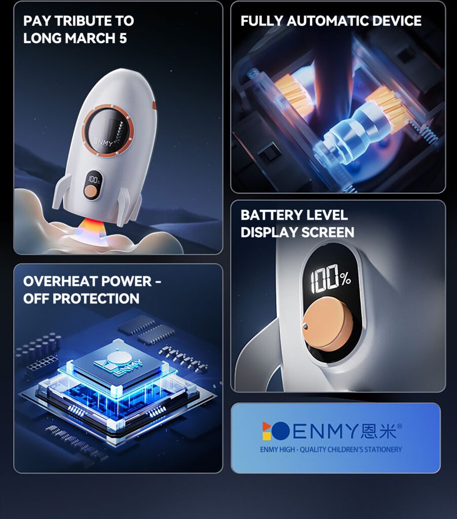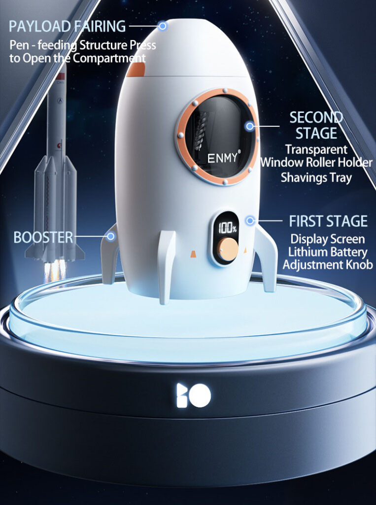 ENMY Fully Automatic Pencil Sharpener The Future of Pencil Sharpening Experience the ultimate convenience of automatic pencil sharpening with ENMY full-automatic Pencil Sharpener. Simply drop in your pencil and let our smart sharpener do the rest!
